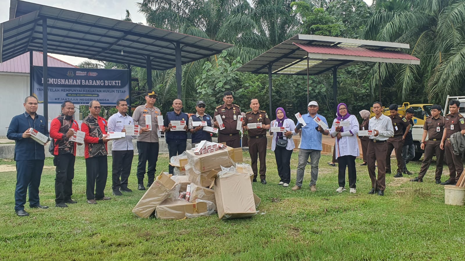 Langsa | Atjeh Terkini.id – Kejaksaan Negeri Langsa musnahkan sebanyak 10 karton rokok ilegal merk Ray dan 90 Liter minuman tuak (minuman tradisional beralkohol yang dihasilkan dari fermentasi nira —red), di Intalasi Pengelolaan Lumpur Tinja, Gampong Simpang Wie, Kecamatan Langsa Timur, Selasa, (9/9/2025).