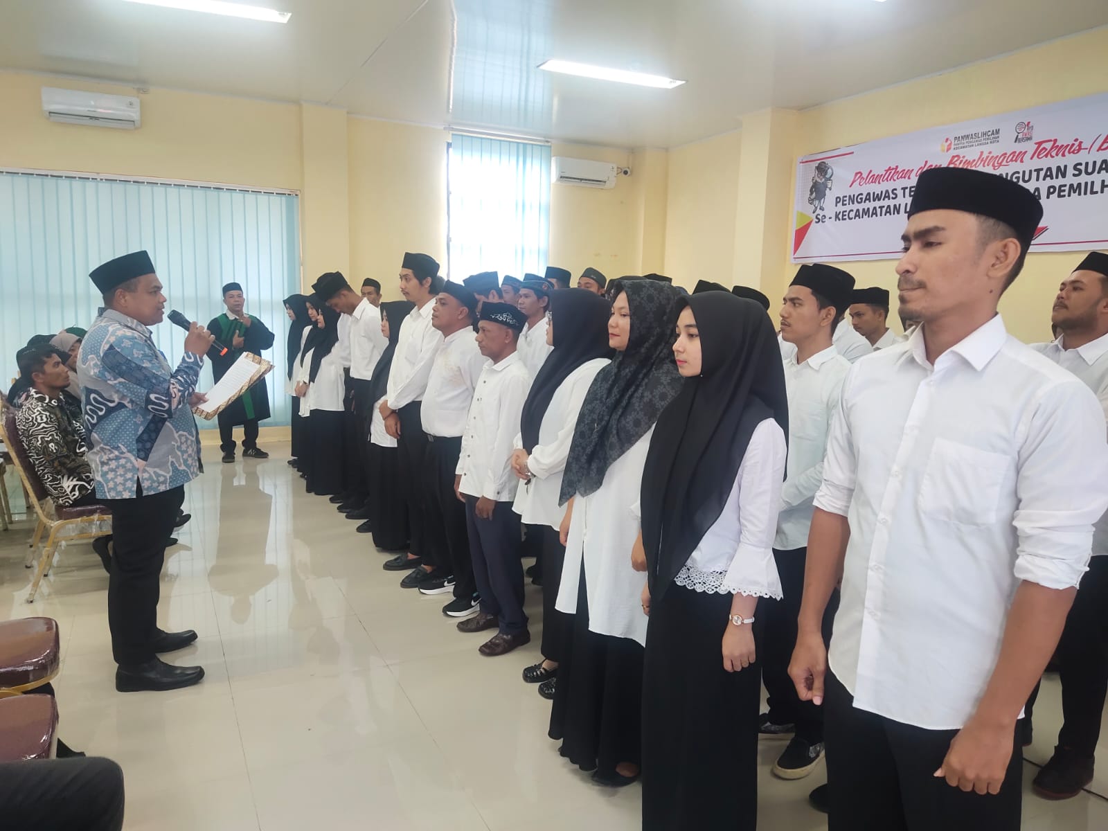 Para ‘Pejuang Pengawas’ itu dilantik oleh Ketua Panwaslihcam Langsa Kota, Muhaddar Fazil, SPd.I, disaksikan oleh pengukuh sumpah yang berjalan penuh khidmat.