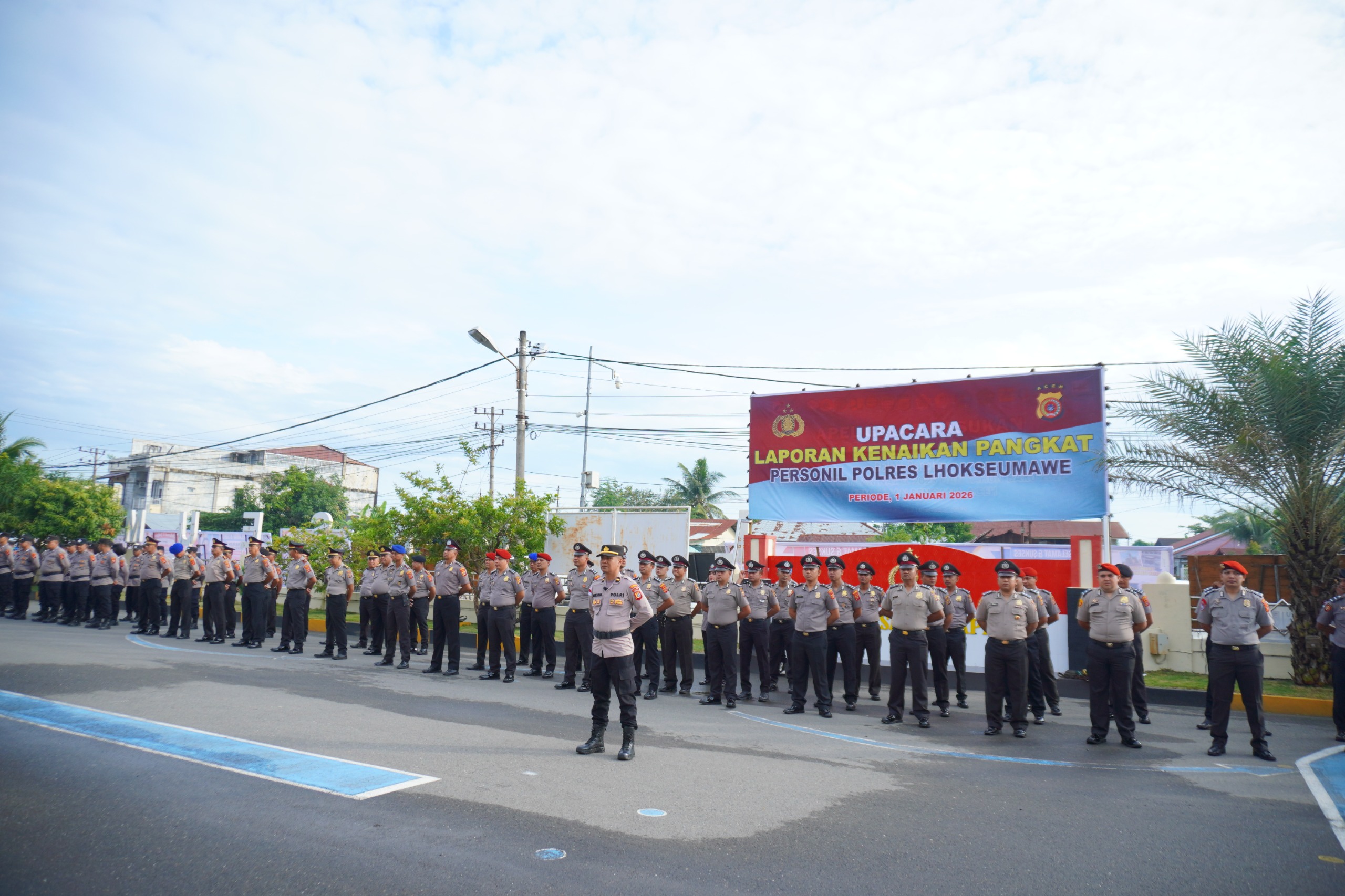 Sebanyak 64 personel Polres Lhokseumawe menerima kenaikan pangkat setingkat lebih tinggi, dengan rincian dari pangkat Iptu ke AKP sebanyak 12 personel, Ipda ke Iptu 5 personel, Aipda ke Aiptu 8 personel, Bripka ke Aipda 27 personel, Brigpol ke Bripka 3 personel, serta Briptu ke Brigadir sebanyak 9 personel.