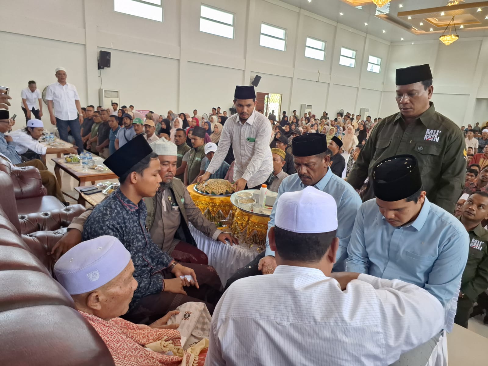 Bireuen | Atjeh Terkini.id – Sebanyak 908 orang saksi untuk Pasangan calon (Paslon) Bupati dan Wakil Bupati Bireuen, Murdani Yusuf-Abdul Muhaimin (Mu’Min), dipeusijeuk (tepung tawar – red) oleh Ulama Kharismatik Aceh, Abu Syech H Hasanoel Basary (Abu Mudi Samalanga) dan Abu Usman Kuta Krueng (Abu Kuta), serta beberapa ulama lainnya, di Gedung Hj Fauziah Conventention Center, Cot Gapu, Bireuen, Selasa (12/11/2024).