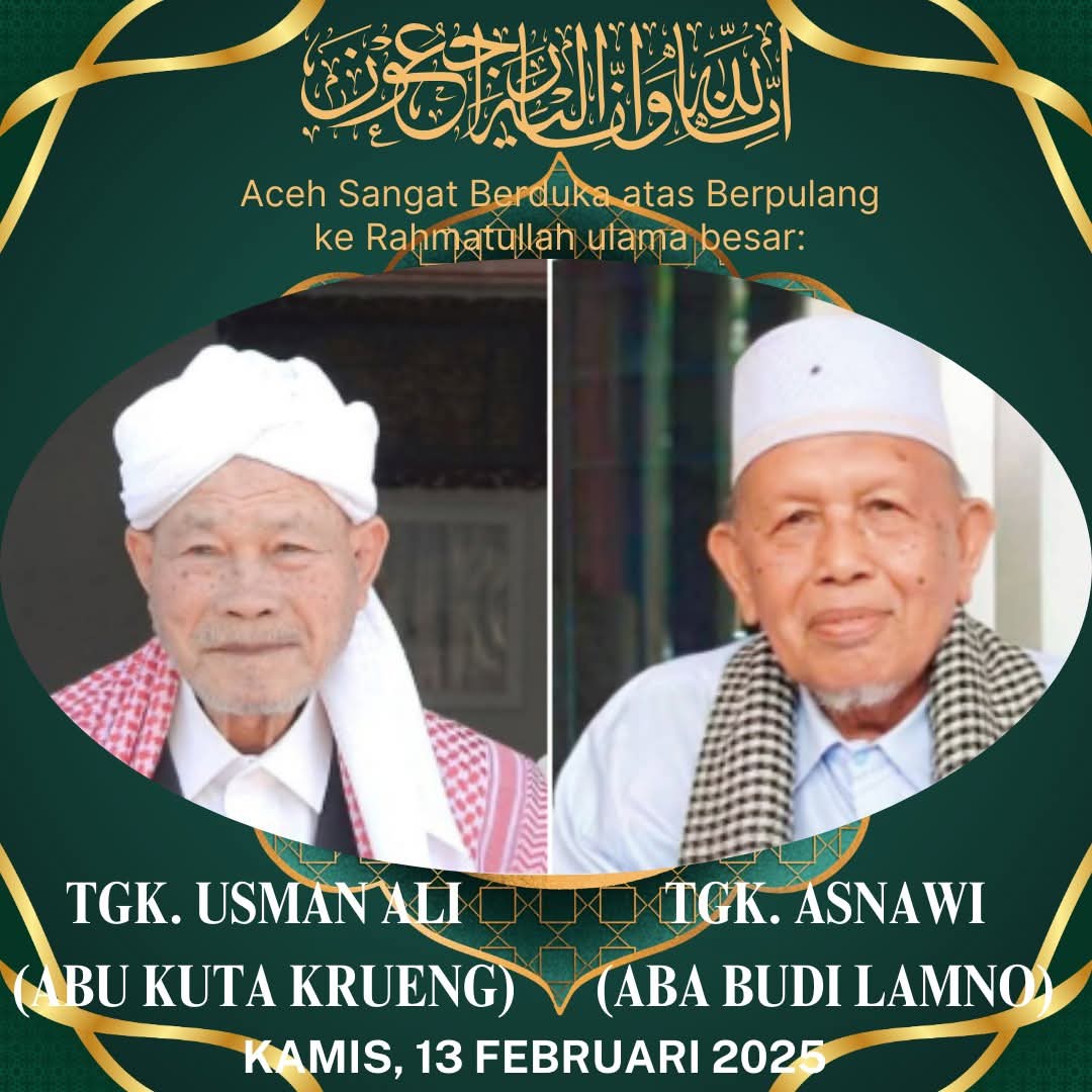 Kadis Dinas Syariat Islam Dan Pendidikan Dayah Kota Lhokseumawe juga menghimbau kepada seluruh Imam Mesjid diwilayah Pemko Lhokseumawe agar kiranya hari ini Bakda salat jumat dapat Melaksanakan solat jenazah Ghaib kepada kedua almarhum ulama kharismatik tersebut. Pangkas ust. Ikhwansyah. (**).