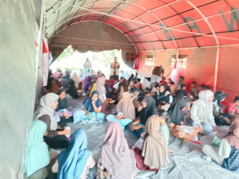 Sebelum pengajian dimulai, para relawan terlebih dahulu melakukan pembagian Al-Qur’an dan Iqra kepada anak-anak dan warga. Pembagian ini bertujuan untuk mendukung pembinaan keagamaan serta memudahkan peserta mengikuti pengajian dan pembelajaran Al-Qur’an secara berkelanjutan.