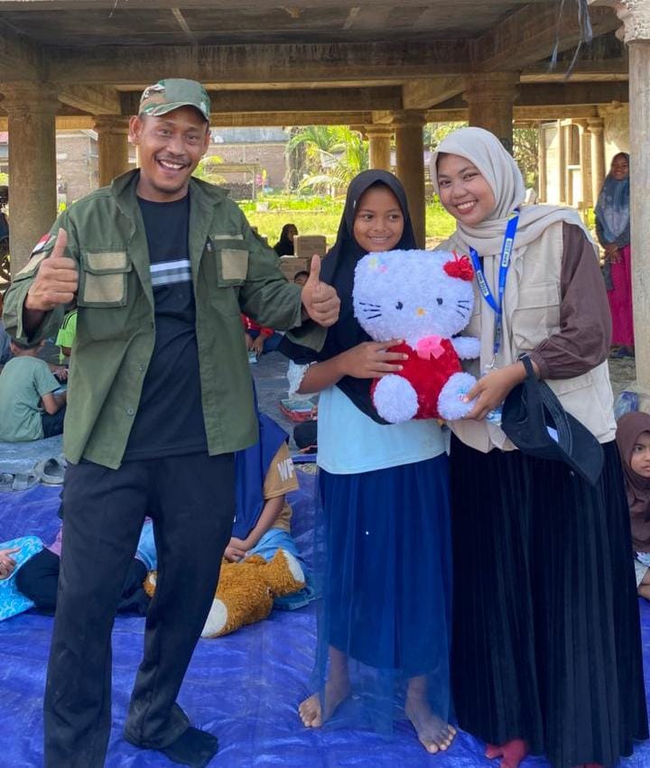 Selain kegiatan keagamaan, relawan juga melakukan pendampingan trauma healing melalui pendekatan ramah anak dan kegiatan “anak ceria” guna membantu mengurangi trauma psikologis yang masih dirasakan anak-anak akibat bencana.