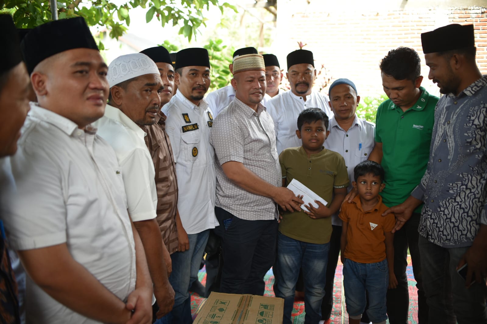 Bupati Aceh Utara Ismail A Jalil SE saat memberikan santunan kepada anak korban