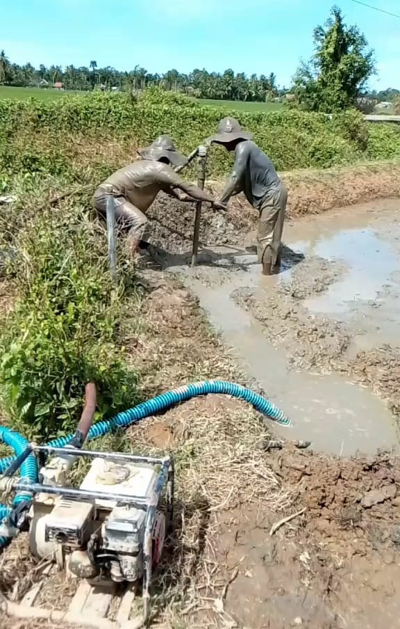 Para petani Meurah Mulia menginisiasi pemasangan pompa darurat dan sumur bor yang terbatas ketersediaan air payau.