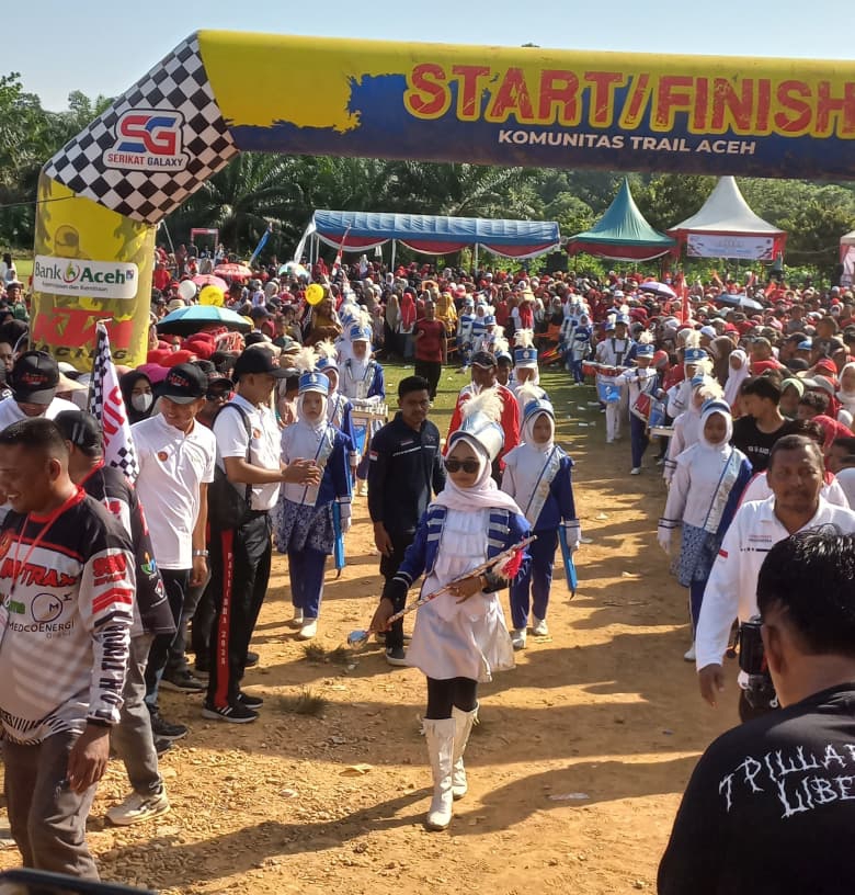 Aceh Timur | Atjeh Terkini.id – Penampilan musik ansambel dari kelompok drumband SDN 1 Blang Nisam, Kecamatan Blang Nisam, sukses turut menarik warga untuk memadati perhelatan Jalan Sehat Gembira (Jasera) yang diselenggarakan Medco E&P Malaka, di Kecamatan Indra Makmu, Senin (18/08/2025).