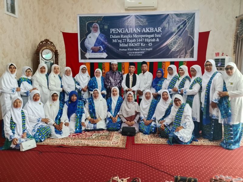 Pernyataan ini disampaikan Hj. Umi Maimah Hamzah, ketua BKMT, Jumat, (16/1/2026), pada pengajian akbar yang dirangkai dalam peringatan Isra mi’raj nabi Muhammad SAW 1447 H dan Milad BKMT ke-54 di pendapa wakil bupati Aceh Singkil, desa Pulo Sarok,