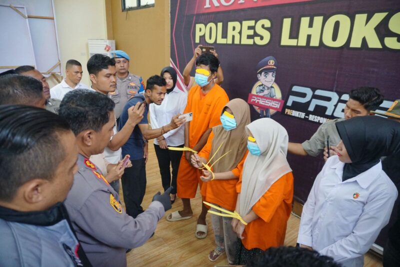 Pengungkapan ini disampaikan saat Konferensi Pers Polres Lhokseumawe yang dipimpin langsung oleh Kapolres Lhokseumawe AKBP Dr. Ahzan., S.H., S.I.K., M.S.M., M.H didampingi Wakapolres Lhokseumawe Kompol Salmidin, S.E., M.M yang berlangsung di Gedung Serbaguna Wirasatya Polres Lhokseumawe, pada Senin (05/05/2025) pagi. Tampak turut hadir dalam konferensi pers tersebut Kasat Reskrim Iptu Yudha Prasetya, S.H, Kasi Humas Salman Alfarasi, S.H., M.M dan Tgk. Ikhwansyah, Kepala Dinas Syariat Islam dan Pendidikan Dayah Kota Lhokseumawe.