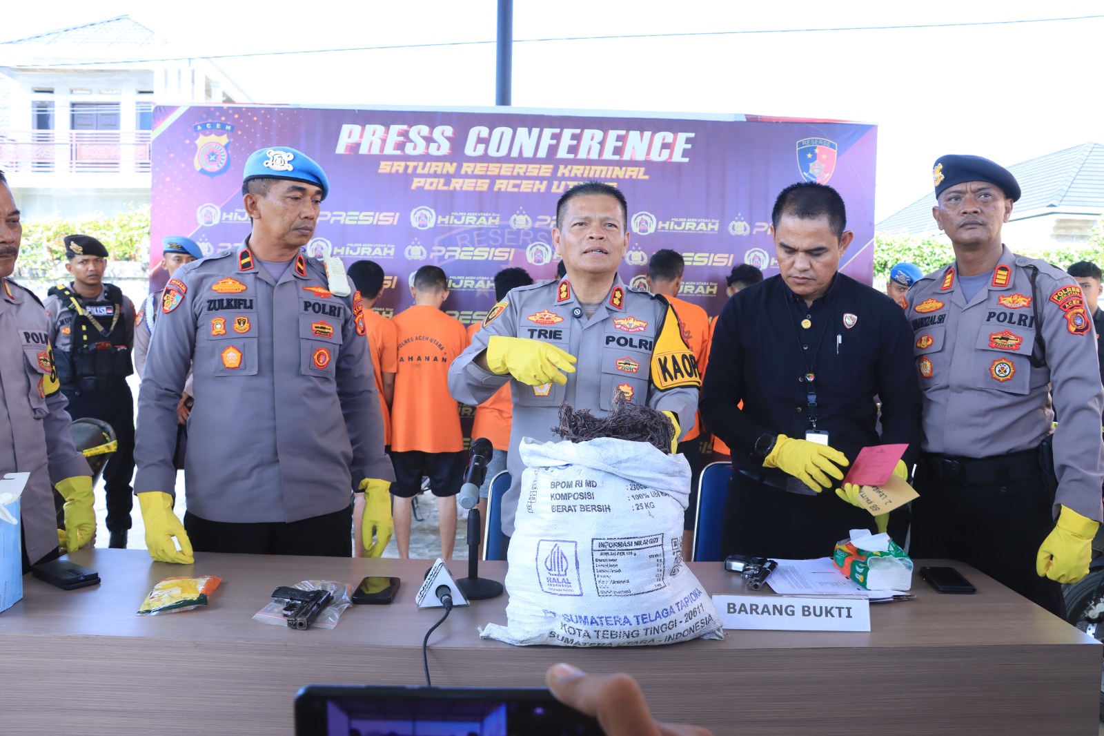 Hal itu disampaikan Kapolres Aceh Utara AKBP Trie Aprianto, S.H., S.I.K kepada awak media pada Kamis (25/07/2025). Ketiga pelaku yang diamankan masing-masing berinisial FM (25), warga Gampong Cot Tufah, Kecamatan Paya Bakong, Aceh Utara; IA (30), warga Gampong Jambo Timu, Kecamatan Blang Mangat, Kota Lhokseumawe; dan MY (56), warga Kota Lhoksukon, Aceh Utara.