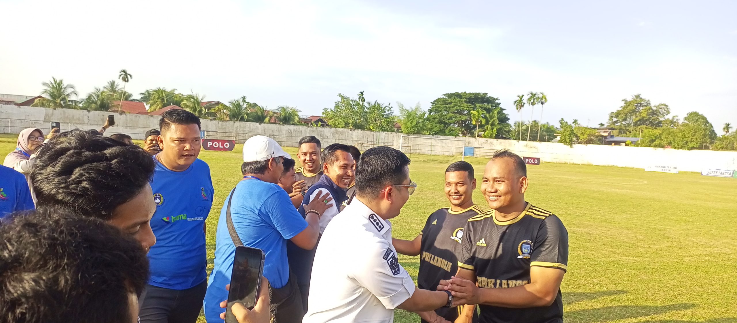 Usai memberikan sambutan Walikota Langsa diberikan kesempatan oleh panitia untuk melakukan tendangan bola perdana menandai dimulainya tournament PEMUDA CUP U35 Tahun, pertandingan antara Polres FC versus Dewan FC.
