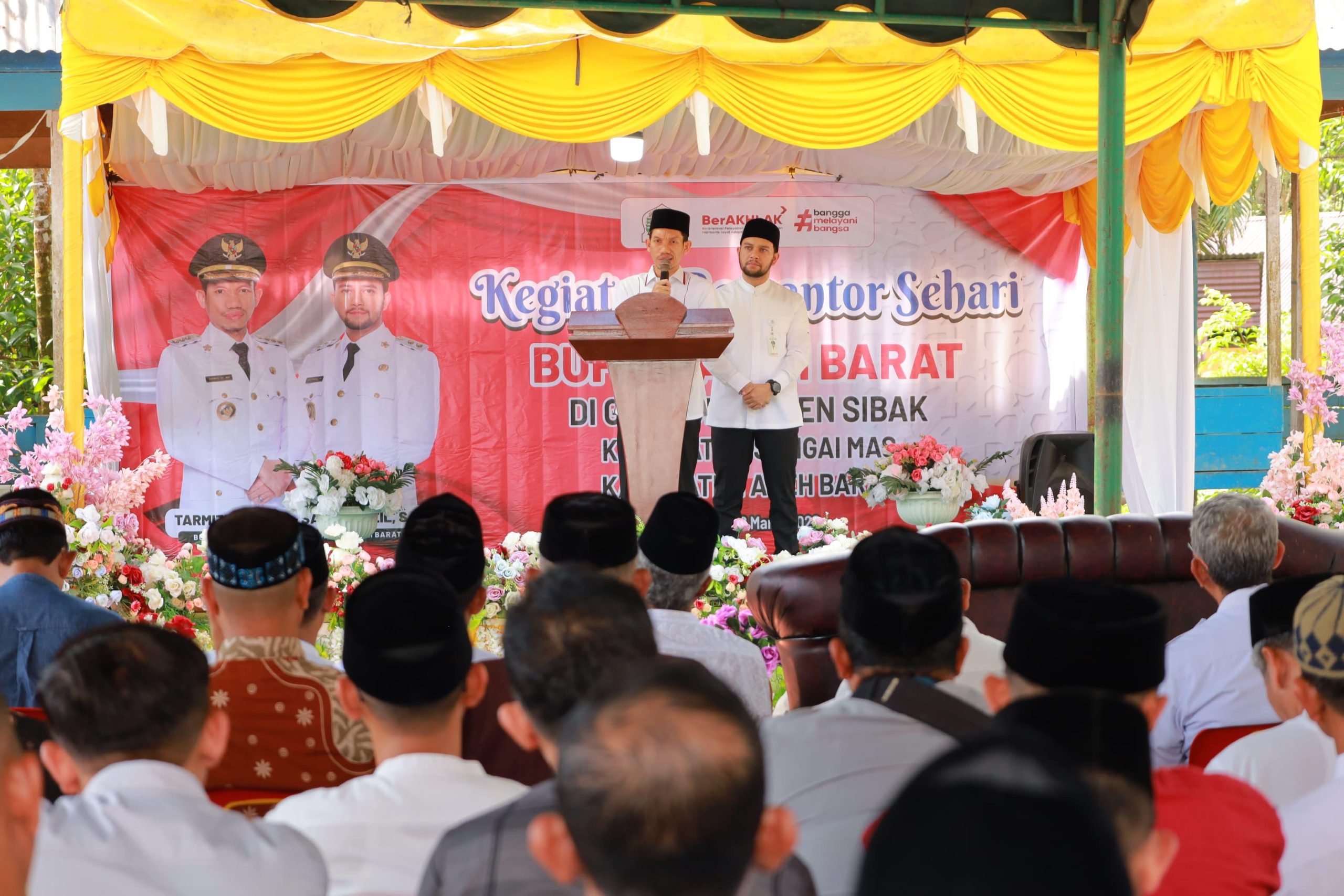 Meulaboh | Atjeh Terkini.id – Bupati Aceh Barat, Tarmizi, bersama Wakil Bupati Said Fadheil berkantor sehari di Gampong Drien Sibak, Kecamatan Sungai Mas, Jumat (6/3/2026). Kegiatan ini turut diikuti unsur Forkopimda, seluruh Satuan Kerja Perangkat Kabupaten (SKPK), serta para camat di lingkungan Pemerintah Kabupaten Aceh Barat.