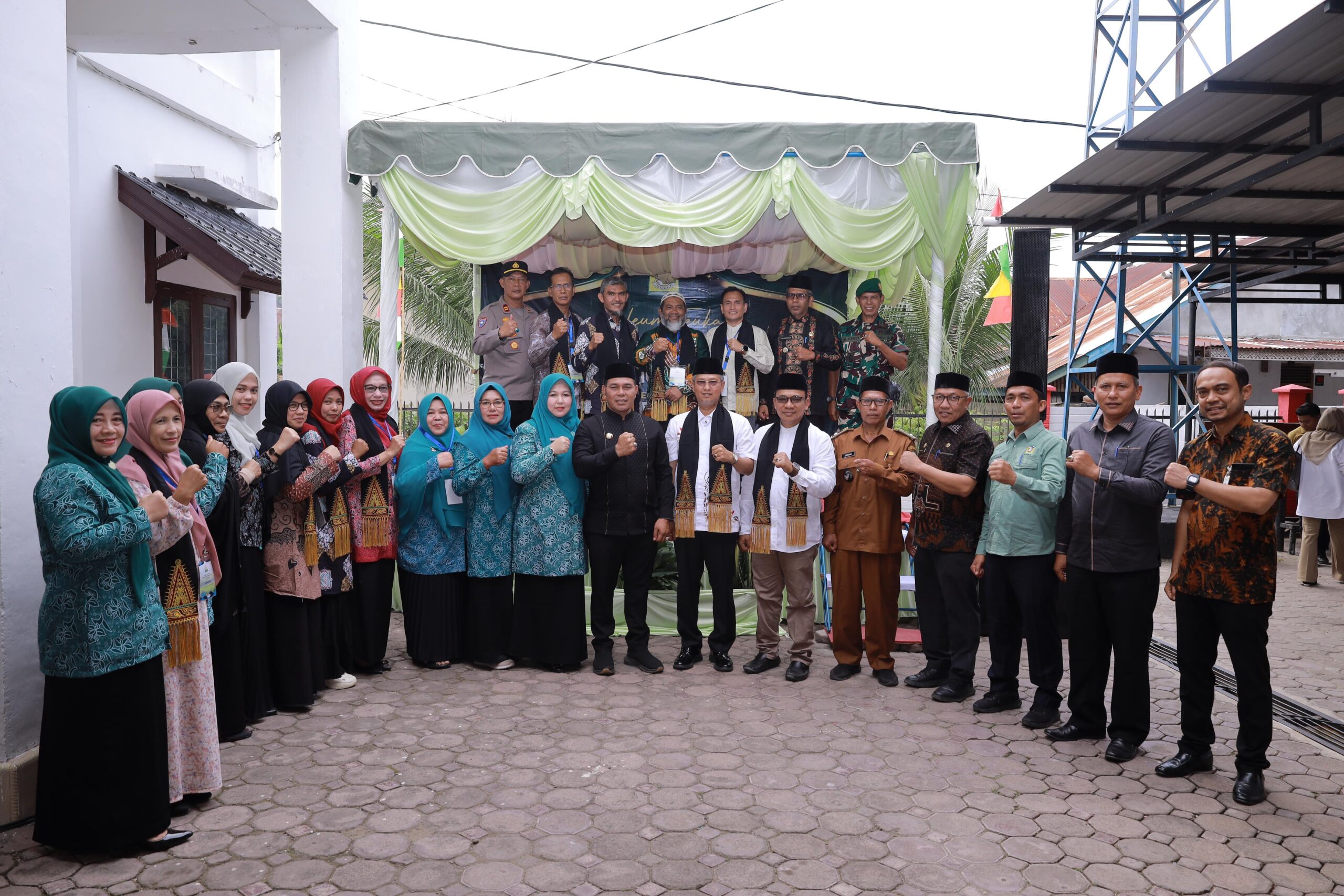 Bupati Aceh Besar H Muharram Idris (Syech Muharram) bersama Ketua TP PKK Kabupaten Aceh Besar Hj Rita Mayasari, menyambut tim penilaian lomba gampong tingkat Provinsi Aceh, di Beuradeun, Kecamatan Peukan Bada, Kabupaten Aceh Besar, Jumat (20/6/2025)