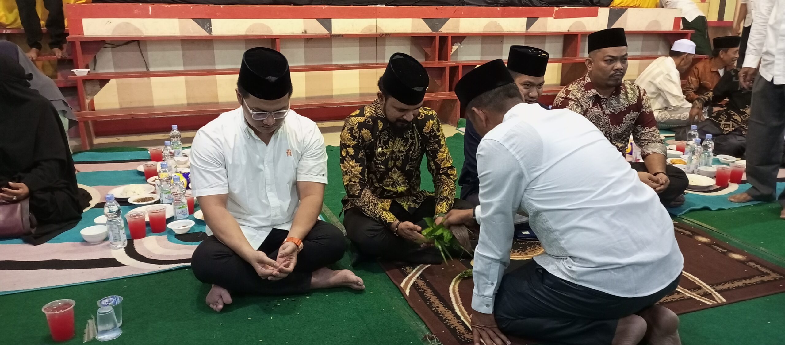 Ia dan wakilnya, anggota DPRK Langsa dr. Febri Aska Putra dan Ridwan Efendi selaku alumni di sambut dengan Peusijuk (tepung tawar -red) oleh para tokoh MUQ Langsa.