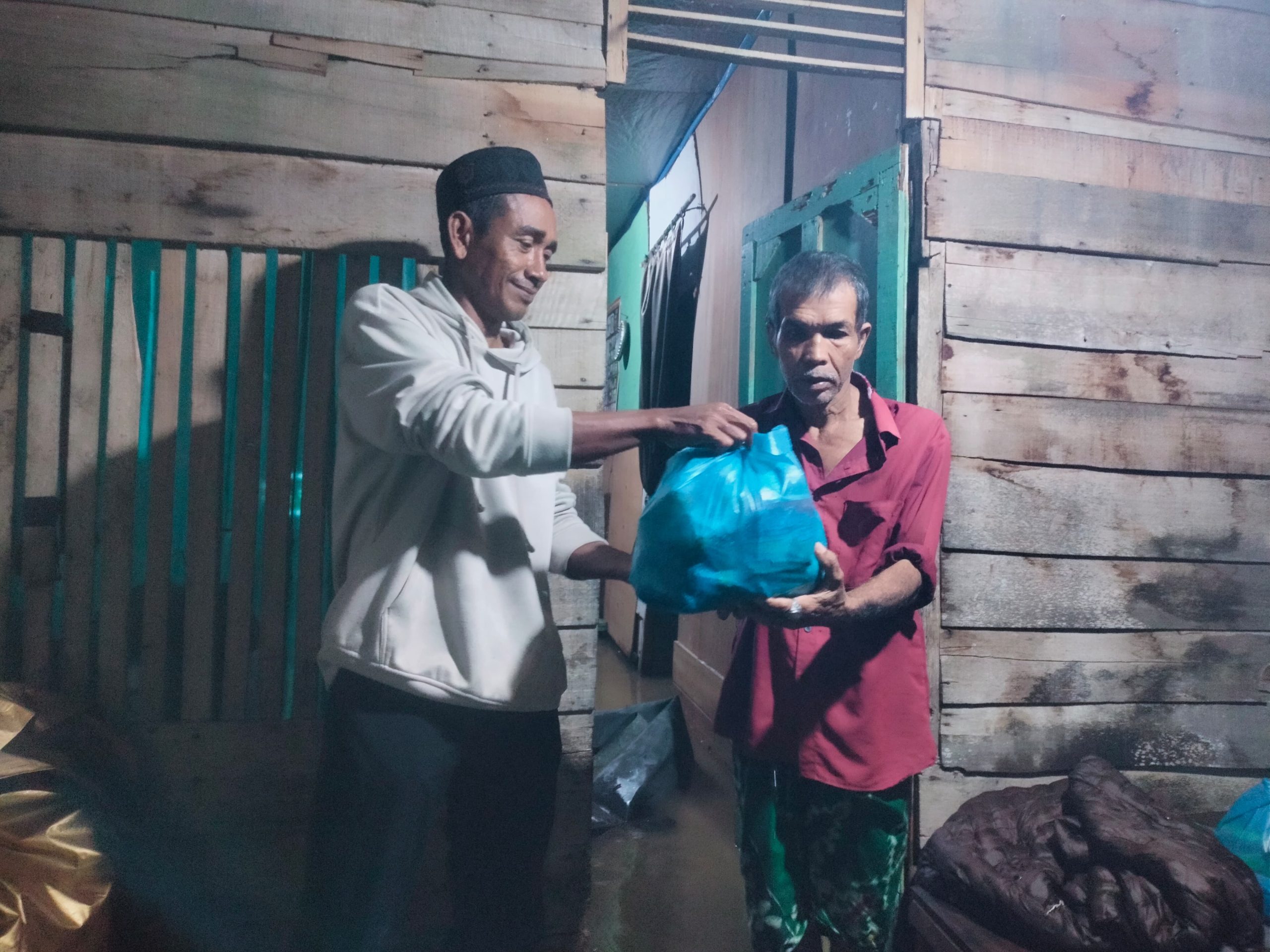 Kedatangan Geuchik terpilih, Kasfi, untuk menyerahkan bantuan ini disambut haru oleh warga yang rumahnya terendam air.