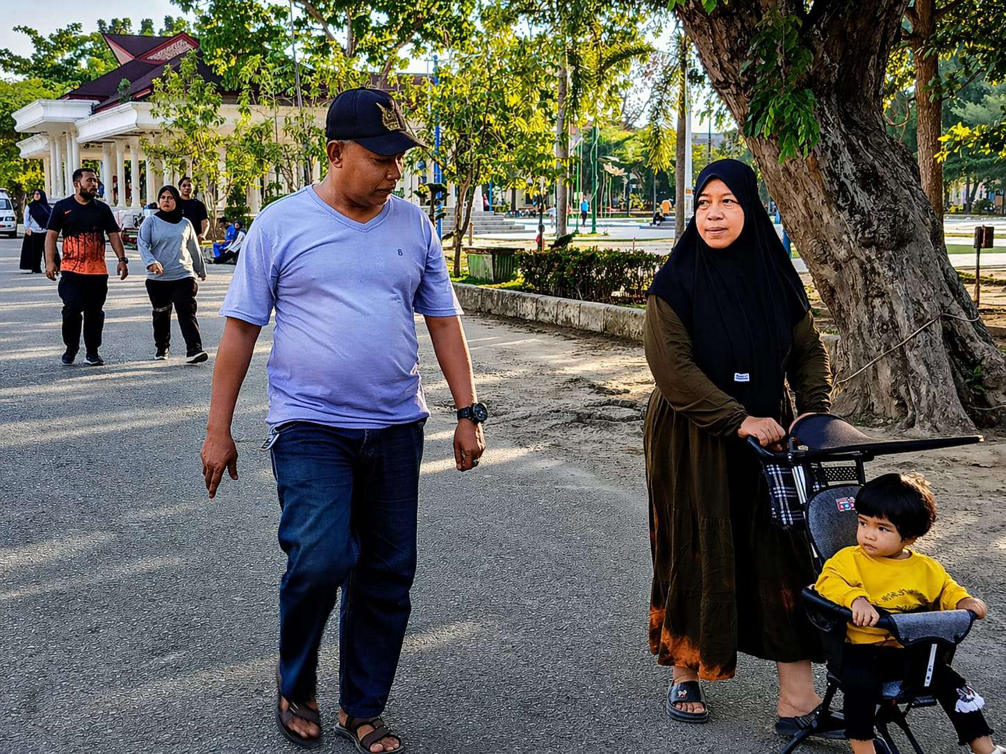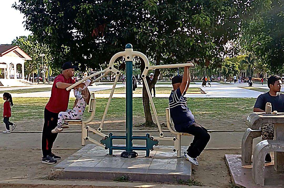 Sejak fajar menyingsing, kawasan ini berubah menjadi ruang kebersamaan. Anak-anak berlarian riang, para orang tua berjalan santai, sementara kelompok masyarakat tampak antusias mengikuti senam sehat. Tawa dan sapa hangat antarwarga menciptakan suasana yang tidak hanya hidup, tetapi juga penuh keakraban.