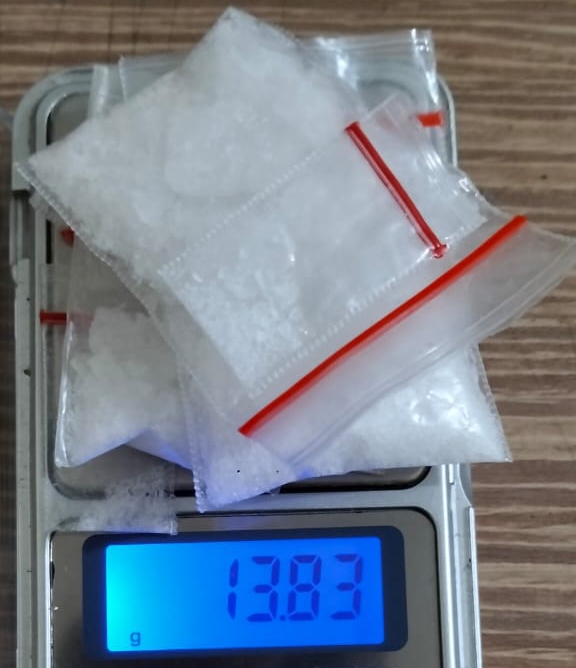 Dari hasil penggeledahan, petugas menemukan 8 paket sabu dengan berat brutto 13,83 gram, uang tunai Rp700.000 hasil penjualan, tiga unit ponsel, plastik klip, alat hisap, serta satu unit sepeda motor Honda Beat warna putih biru tanpa nomor polisi.