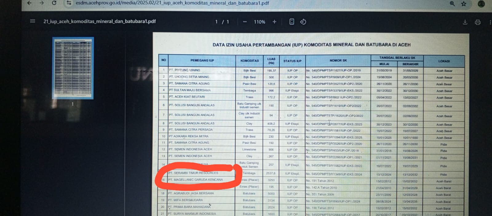 “Secara legal formal, PT MGK memiliki IUP OP yang sah. Data izin dan peta wilayah operasinya juga dapat diakses melalui website resmi Dinas ESDM Aceh,” tambahnya. Ia juga memastikan bahwa dokumen penting seperti Rencana Kerja dan Anggaran Biaya (RKAB) telah dipenuhi sesuai prosedur yang berlaku.