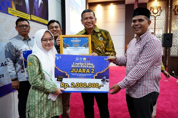 Penyerahan hadiah berlangsung di Aula Dinas Pendidikan Aceh, Jumat (13/3/2026).