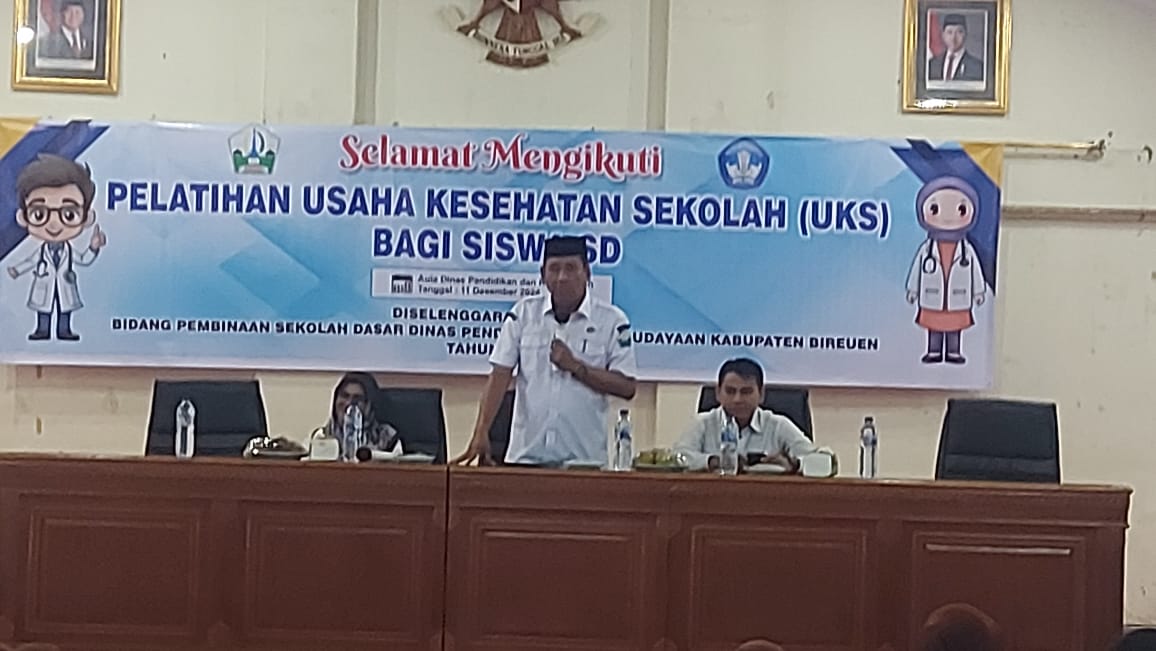 Bireuen | Atjeh Terkini.id – Kepala Dinas Pendidikan dan Kebudayaan (Disdikbud) Bireuen, Dr. Muslim, M.Si yang diwakilkan oleh Sekretaris Dinas Pendidikan dan Kebudayaan Kabupaten Bireuen Zamzami, S.Pd, M.M, resmikan Pelatihan Usaha Kesehatan Sekolah (UKS) tingkat Sekolah Dasar (SD) se Kabupaten Bireuen tahun 2024.