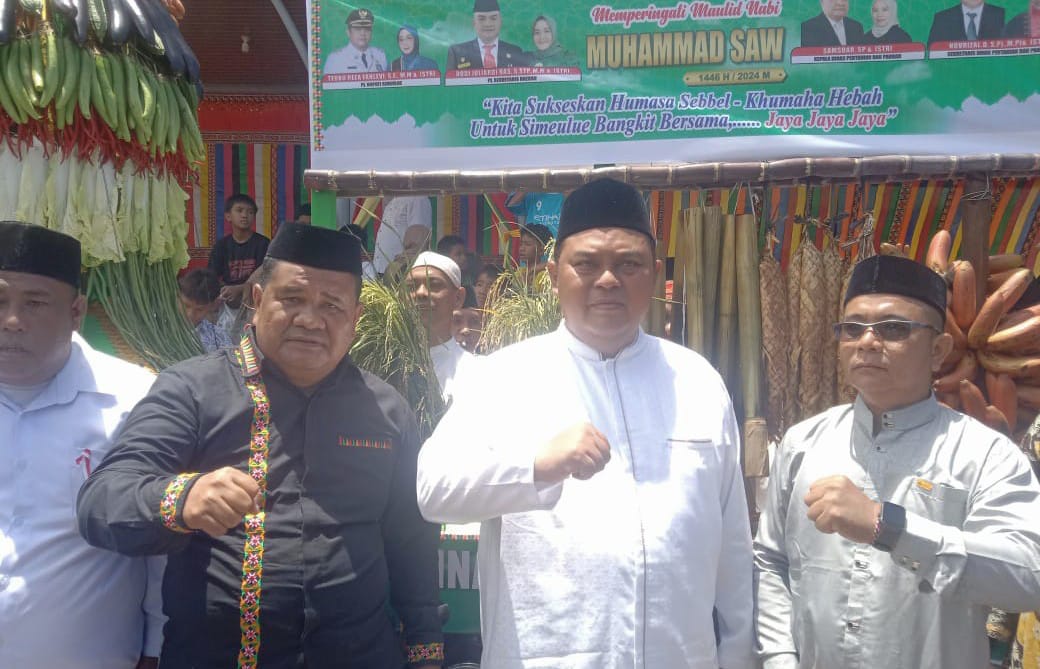 Oleh karena itu, lanjut Samsuar kami dari Dinas Pertanian dan Pangan Kabupaten Simeulue mencoba berupaya berinovasi menampilkan bale dengan mengangkat tema sesuai spanduk yang terpampang pada bale yaitu Dengan Peringatan Maulid Nabi Besar Muhammad SAW 1446 H/2024 M kita sukseskan Humasa Sebbel-khumaha hebah untuk Simeulue bangkit bersama, Jaya – Jaya Jaya.