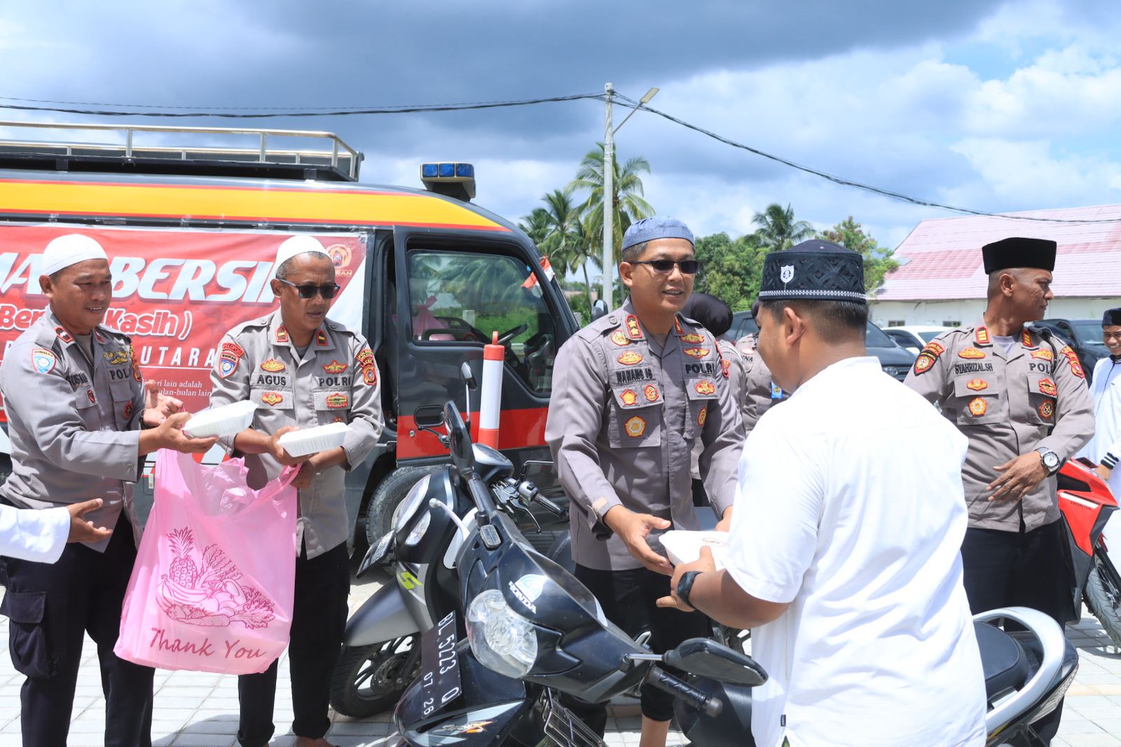 Dipimpin langsung oleh Kapolres Aceh Utara, AKBP Nanang Indra Bakti, S.H., S.I.K kegiatan ini diwujudkan dalam bentuk pembagian ratusan porsi nasi kotak siap santap kepada para jamaah usai pelaksanaan Shalat Jum’at. Langkah ini merupakan bagian dari upaya kepolisian untuk lebih dekat dengan masyarakat, sekaligus berbagi kebahagiaan kepada mereka yang membutuhkan.