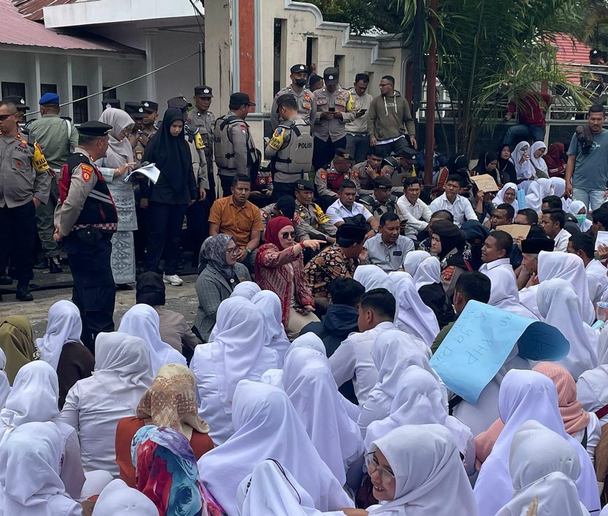 Ratusan Tenaga Kesehatan gelar unjuk rasa di depan Kantor Dewan Perwakilan Kabupaten (DPRK) Aceh Tengah mereka menuntut haknya, Kamis 17 oktober 2024