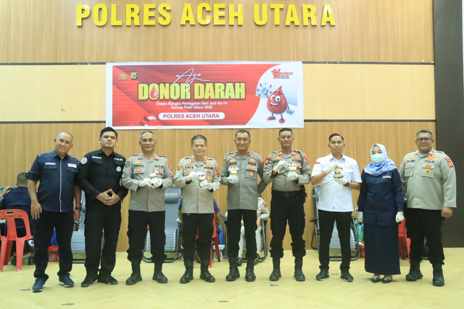 Aceh Utara | Atjeh Terkini.id – Polres Aceh Utara menggelar aksi kemanusiaan berupa kegiatan donor darah bekerjasama dengan Unit Transfusi Darah (UTD) Palang Merah Indonesia (PMI) Aceh Utara. Kegiatan ini dilaksanakan sebagai bagian dari rangkaian peringatan Hari Jadi Humas Polri ke-74 yang jatuh pada 30 Oktober mendatang.