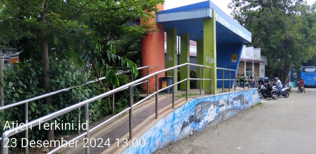 Banda Aceh I Atjeh Terkini.Id. Miris terlihat Halte Bus Koetarja di jalan Cut Mutia, Keudah, Kuta Raja, Banda Aceh di tumbuhi rumput semak tidak terurus oleh Dinas Perhubungan Aceh, hal tersebut berdasarkan pantauan media online Atjeh Terkini.id, Senin 23 Desember 2024.