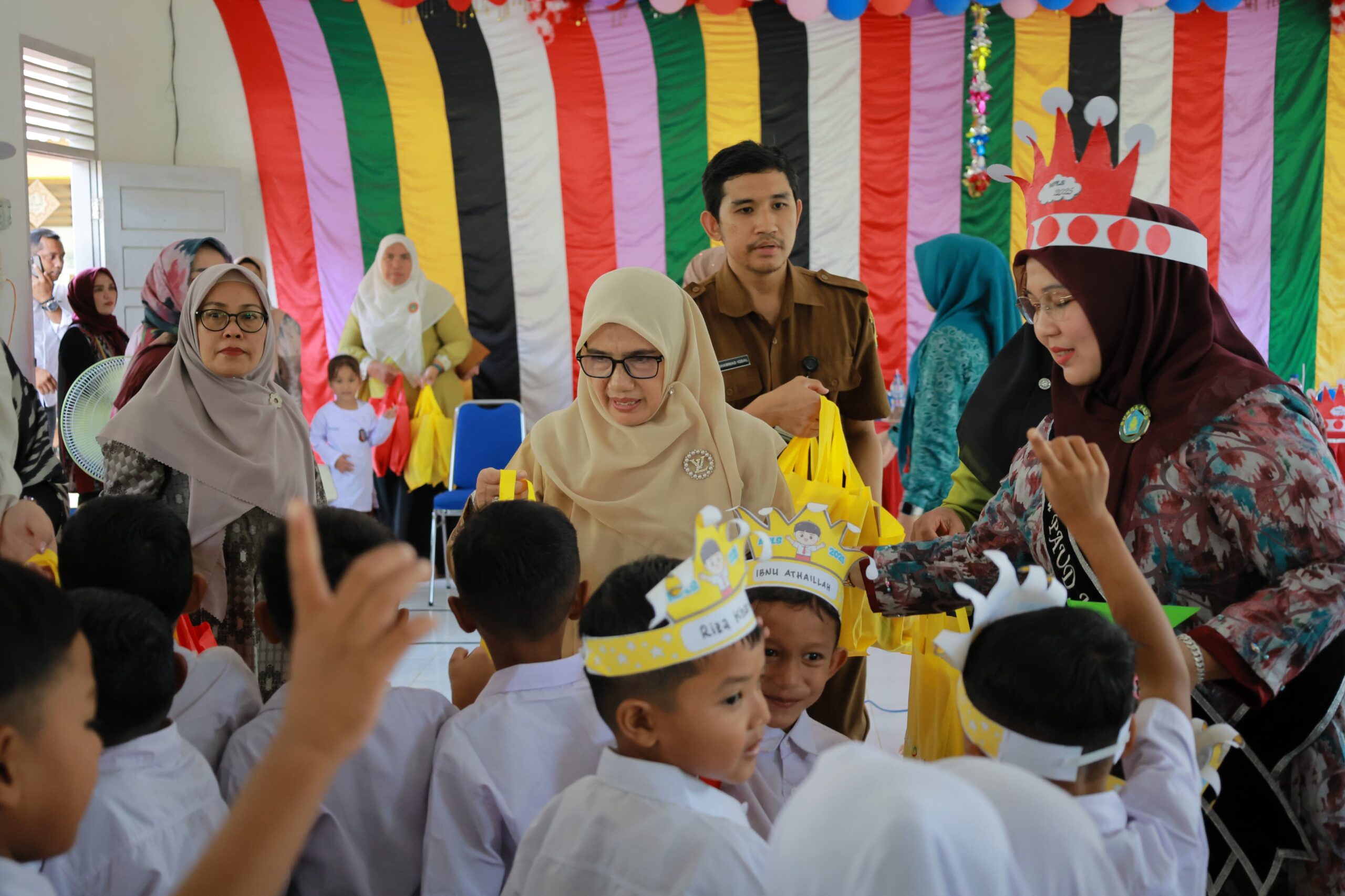 Pada hari kedua Masa Pengenalan Lingkungan Sekolah (MPLS) Bunda PAUD Aceh, Marlina Muzakir, didampingi Bunda PAUD Aceh Besar, Hj. Rita Mayasari, mengunjungi Sekolah Dasar Negeri (SDN) Gampong Lhok Semelu, Kecamatan Blang Bintang, Aceh Besar, Selasa, 15 Juli 2025