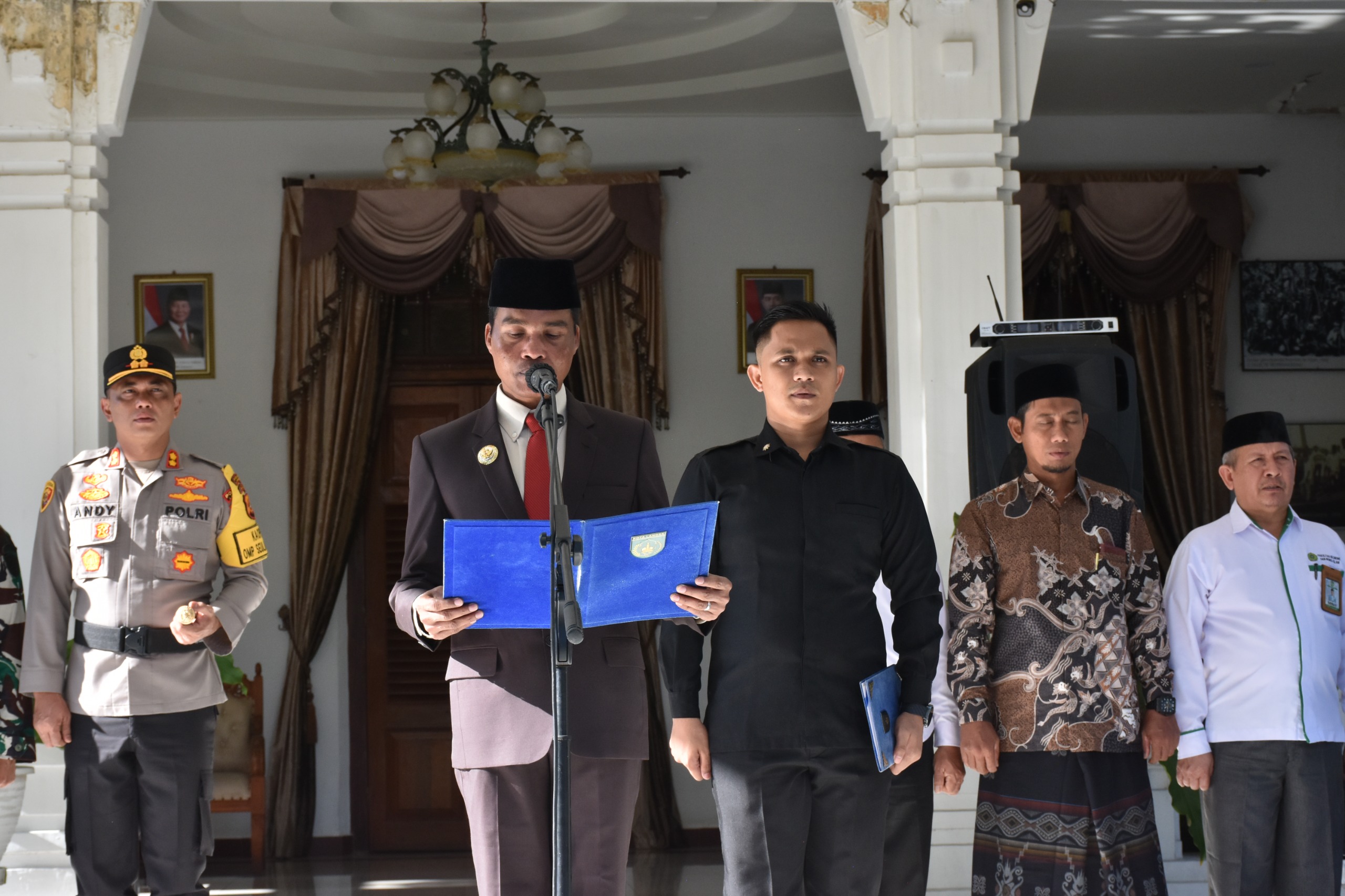 Bertindak sebagai Komandan Upacara Roli Bagus Sentana, S.Tr. IP, Upacara Bendera tersebut berlangsung khidmat dan turut diikuti oleh Forkopimda, Rektor, Pj Sekda, Ketua MAA, MPD, MPU, Baitul Mal, Asisten, Pimpinan OPD, Instansi Vertikal, Gerakan Pramuka dan para tamu undangan lainnya.