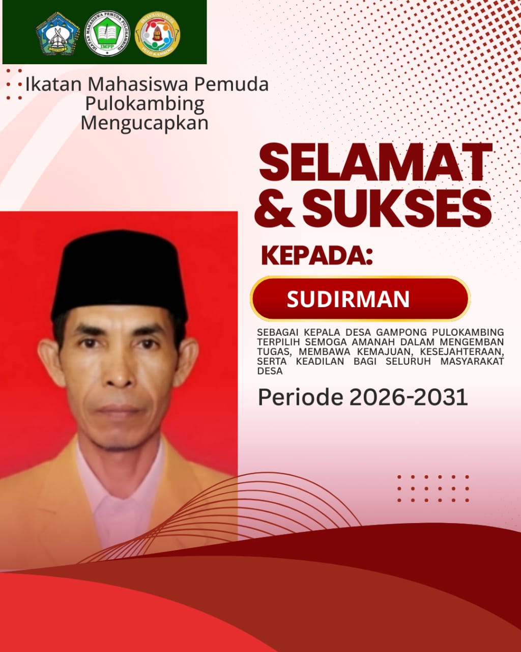 Aceh Selatan| Atjeh Terkini.id – Ikatan Mahasiswa Pemuda Pulo kambing (IMPP) menyampaikan ucapan **selamat dan sukses** kepada **Sudirman** yang telah terpilih sebagai **Keuchik Gampong Pulo kambing periode 2026–2031 melalui proses pemilihan yang berlangsung secara demokratis, aman, dan kondusif.