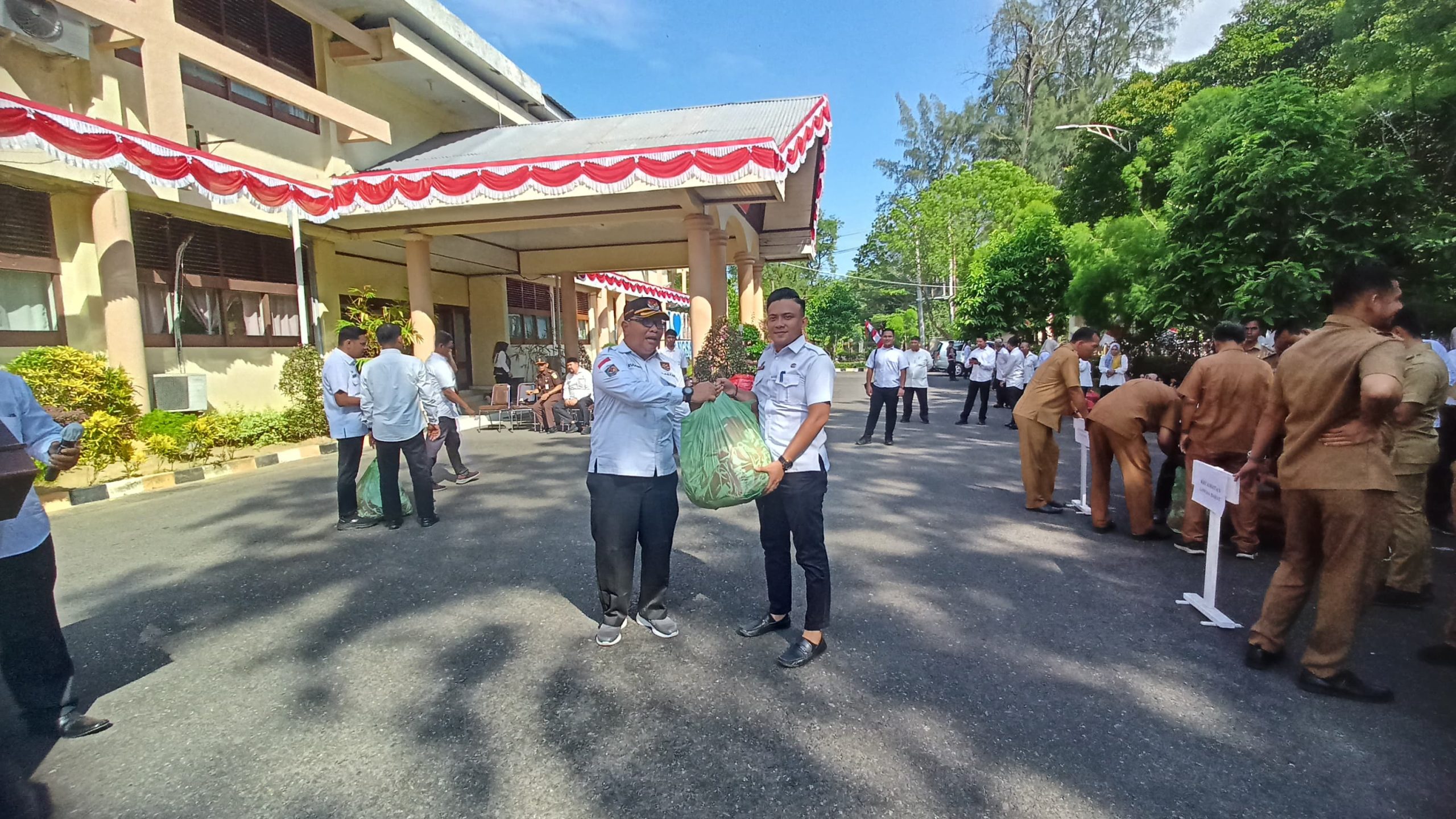 Langsa | Atjeh Terkini.id – Menyambut HUT RI ke 80, Kesbangpol Langsa bagikan bendera Merah Putih gratis sebanyak 3410 lembar dengan berbagai ukuran kepada warga di halaman kantor Walikota Langsa, Rabu (13/8/2025).