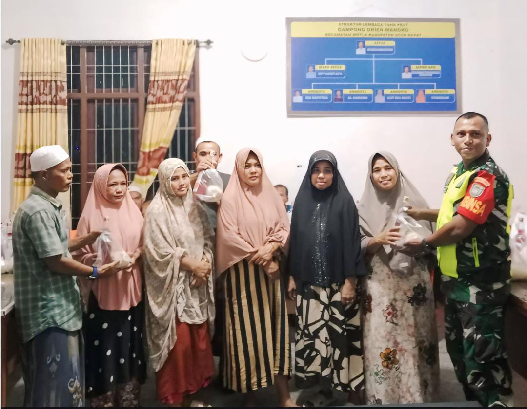 Santunan tersebut diserahkan langsung oleh Tgk. Imum Chik, Tuha Peut (lembaga adat Gampoeng), serta Babinsa Desa Drien Mangko.