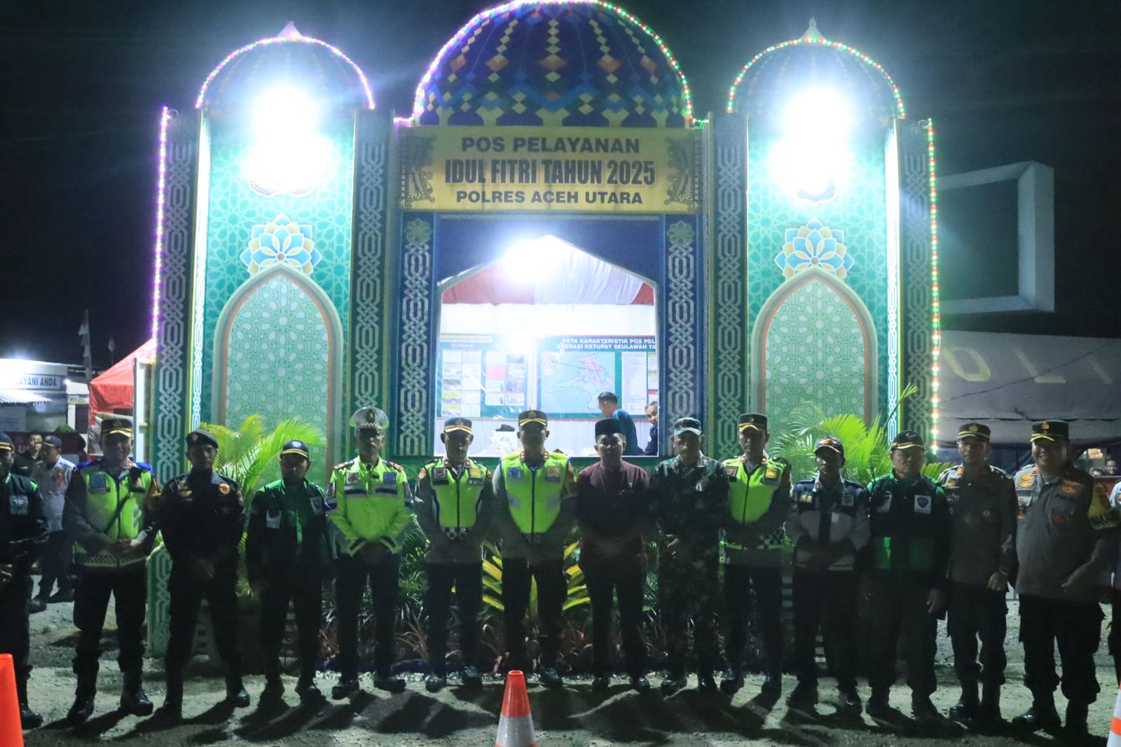 Aceh Utara | Atjeh Terkini.id – Kapolres Aceh Utara, AKBP Nanang Indra Bakti, S.H., S.I.K didampingi Wakapolres serta pejabat utama Polres Aceh Utara kembali meninjau Pos Pelayanan (Posyan) pada malam takbiran Idul Fitri 1446 H, tepatnya di depan Polsek Lhoksukon pada Ahad, (30/03/2025) malam.