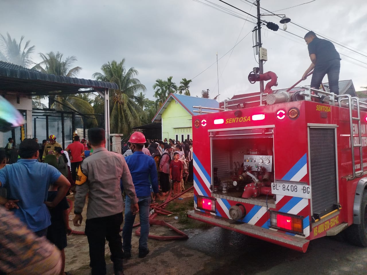 Melihat kejadian kebakaran tersebut, saksi Yahya (52) panik dan berteriak meminta pertolongan warga sekitar lokasi kejadian dikarenakan kondisi angin sedikit kencang, sehingga api cepat merambat dan membakar dua unit rumah, yakni rumah Husniadi (47) yang berkontruksi kayu dan rumah Muslim AB (45) yang berkontruksi beton. Saksi juga melaporkan kejadian tersebut kepada Kepolisian Sektor Nibong.