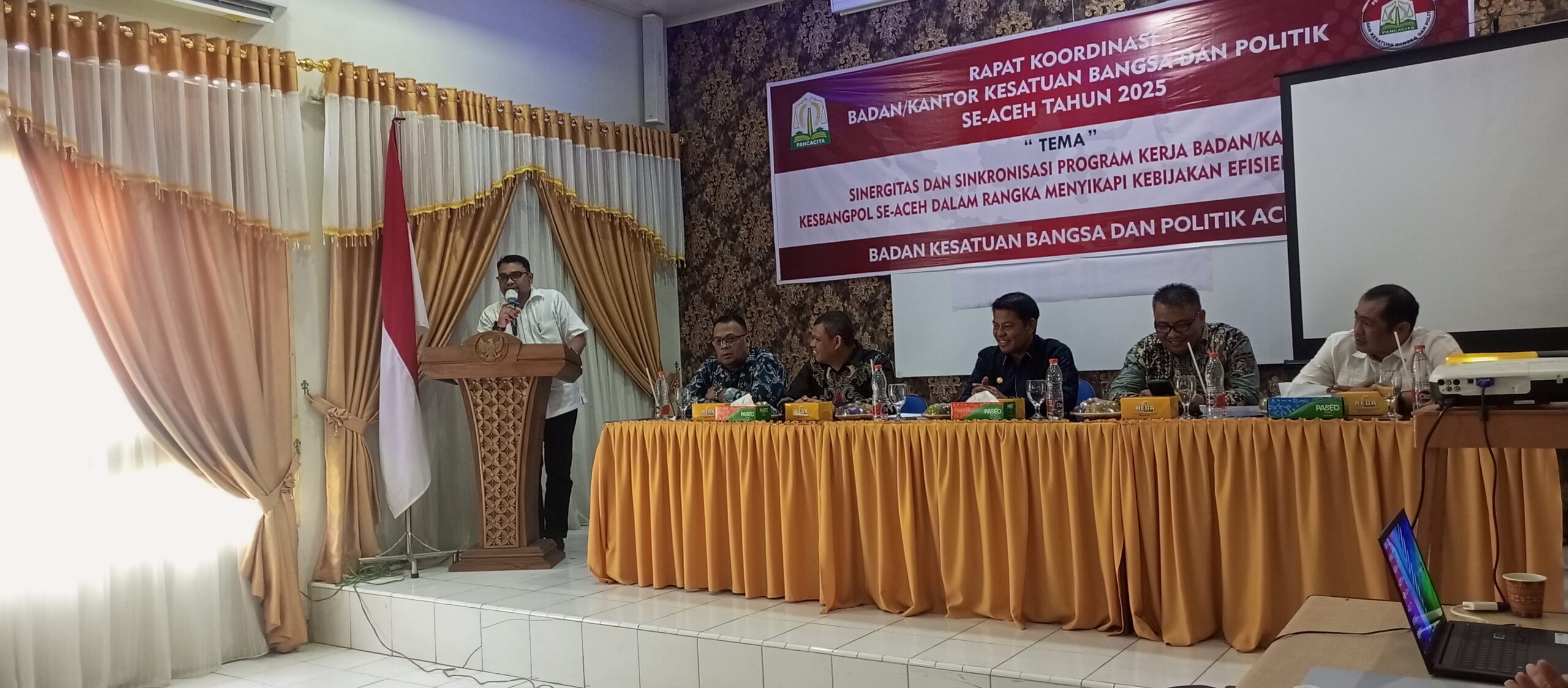 Giat itu dengan tema “Sinergitas dan sinkronisasi program Badan/Kantor Kesatuan Bangsa dan politik se Aceh dalam Rangka menyikapi kebijakan efisiensi”.