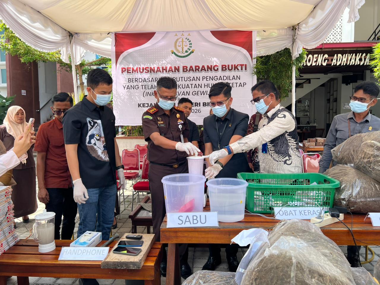 BIREUEN l Atjeh Terkini.Id- Kejaksaan Negeri Bireuen Komit penegakan Hukum, kali ini musnahkan ribuan barang bukti sitaan perkara tindak pidana umum yang telah berkekuatan hukum tetap (inkracht van gewijsde), Selasa (10/2/2026).