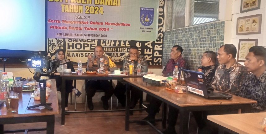 Demikian diantaranya disampaikan oleh Kapolres Langsa AKBP Andy Rahmansyah, S.I.K., S.H, M.H., saat menjadi pemateri pada kegiatan Ngopi Damai Aceh Tahun 2024 yang digelar Badan Kesatuan Bangsa Kota Langsa di Hope Coffe di Jalan A.Yani Gampong Jawa, Kecamatan Langsa Kota, Kamis (14/11/24).
