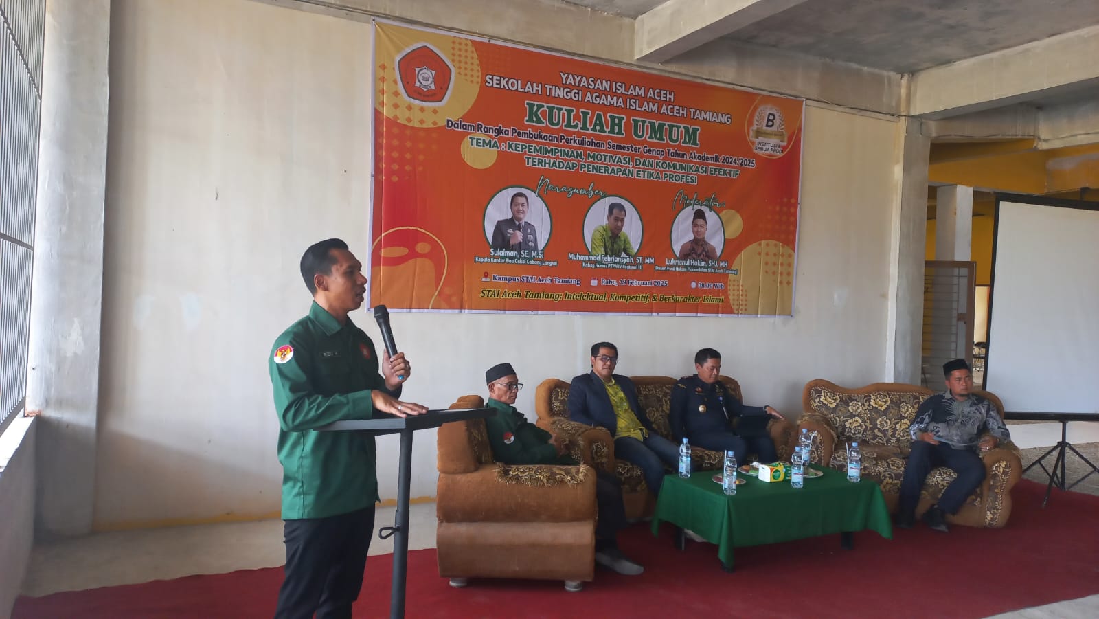 Aceh Tamiang | Atjeh Terkini.id – Yayasan Islam Aceh, Kampus Skolah Tinggi Agama Islam Aceh Tamiang (STAI-AT) menggelar Kuliah Umum di semester genap tahun 2025, di Aula Terbuka kampus setempat di Jalan Medan – Banda Aceh, KM 138, Desa Tanah Terban, Kecamatan Karang Baru, Kabupaten Aceh Tamiang, Rabu (19/02/2025).