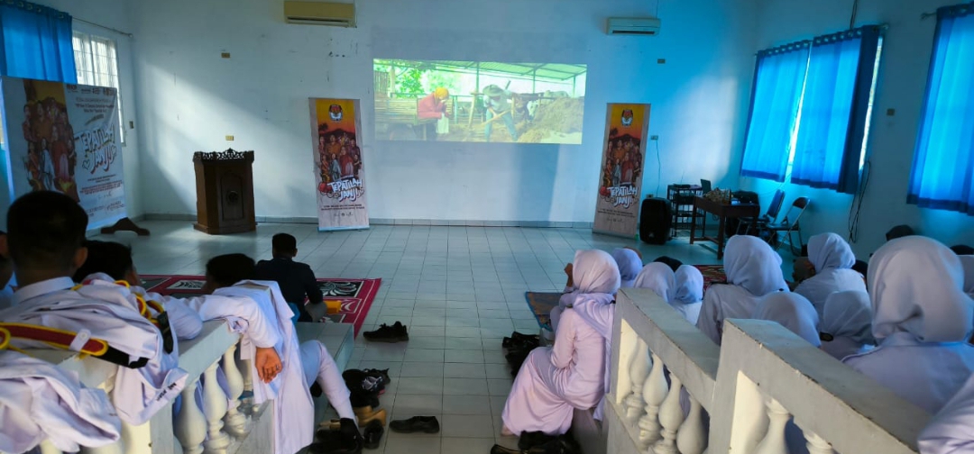 Langsa | Atjeh Terkini.id – Ratusan pelajar SMA Cut Nyak Dhien Langsa ikut sosialisasi pemilih pemula dengan tema “Goes to School” yang dilaksanakan Komisi Independen Pemilihan (KIP) Kota Langsa. Sosialisasi ini dengan cara nonton bersama (Nobar) Film “Tepatilah Janji” .