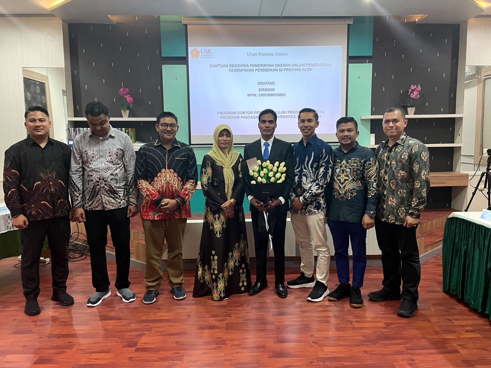 Dikatakan lebih lanjut, dalam sidang terbuka, Syaridin berhasil memaparkan hasil penelitian dengan judul disertasi “Bantuan Beasiswa Pemerintah Daerah Dalam Pemerataan Kesempatan Pendidikan di Provinsi Aceh”.