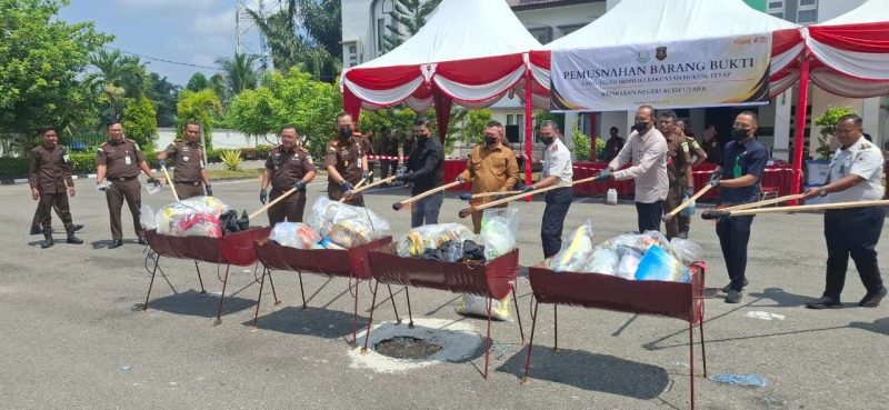 Aceh Utara I Atjeh Terkini.id – Kejaksaan Negeri (Kejari) Aceh Utara kembali menunjukkan komitmennya dalam menegakkan supremasi hukum dengan melaksanakan pemusnahan Barang Bukti (BB) dari 77 perkara tindak pidana yang telah berkekuatan hukum tetap (inkracht).
