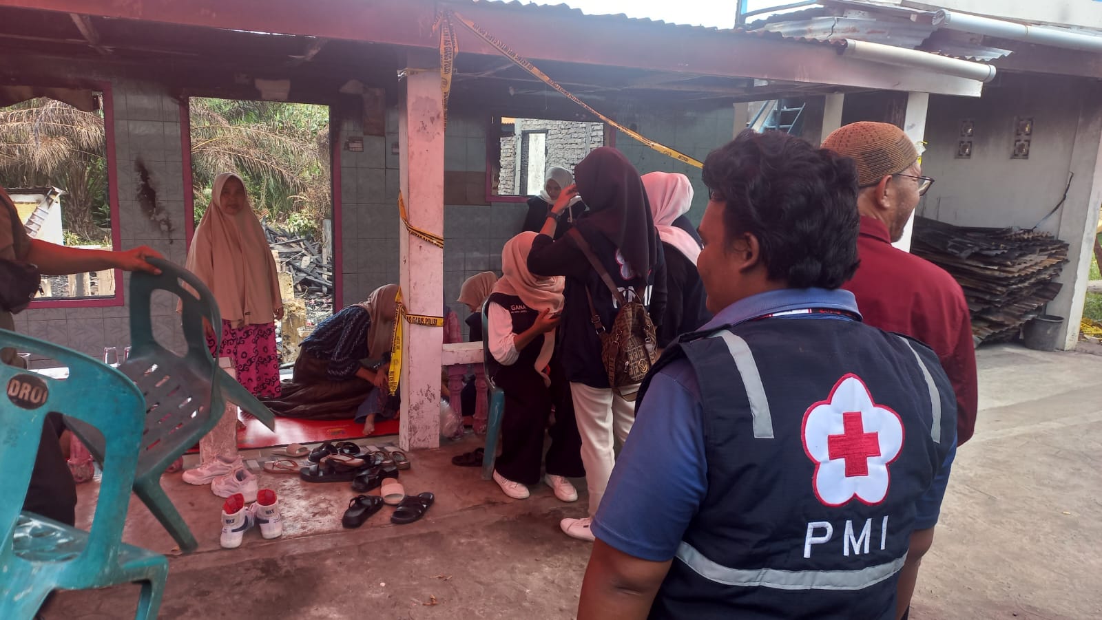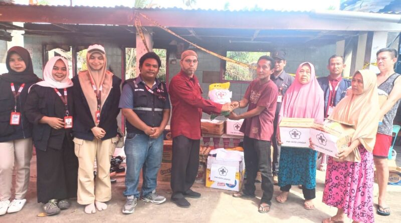 Ketua PMI Kota Langsa Ir. Sayid Abdurrahman, melalui Sekretaris Zakirullah, didampingi oleh para Relawan Markas menyalurkan bantuan masa panik kepada korban kebakaran, Minggu (27/04/2025).