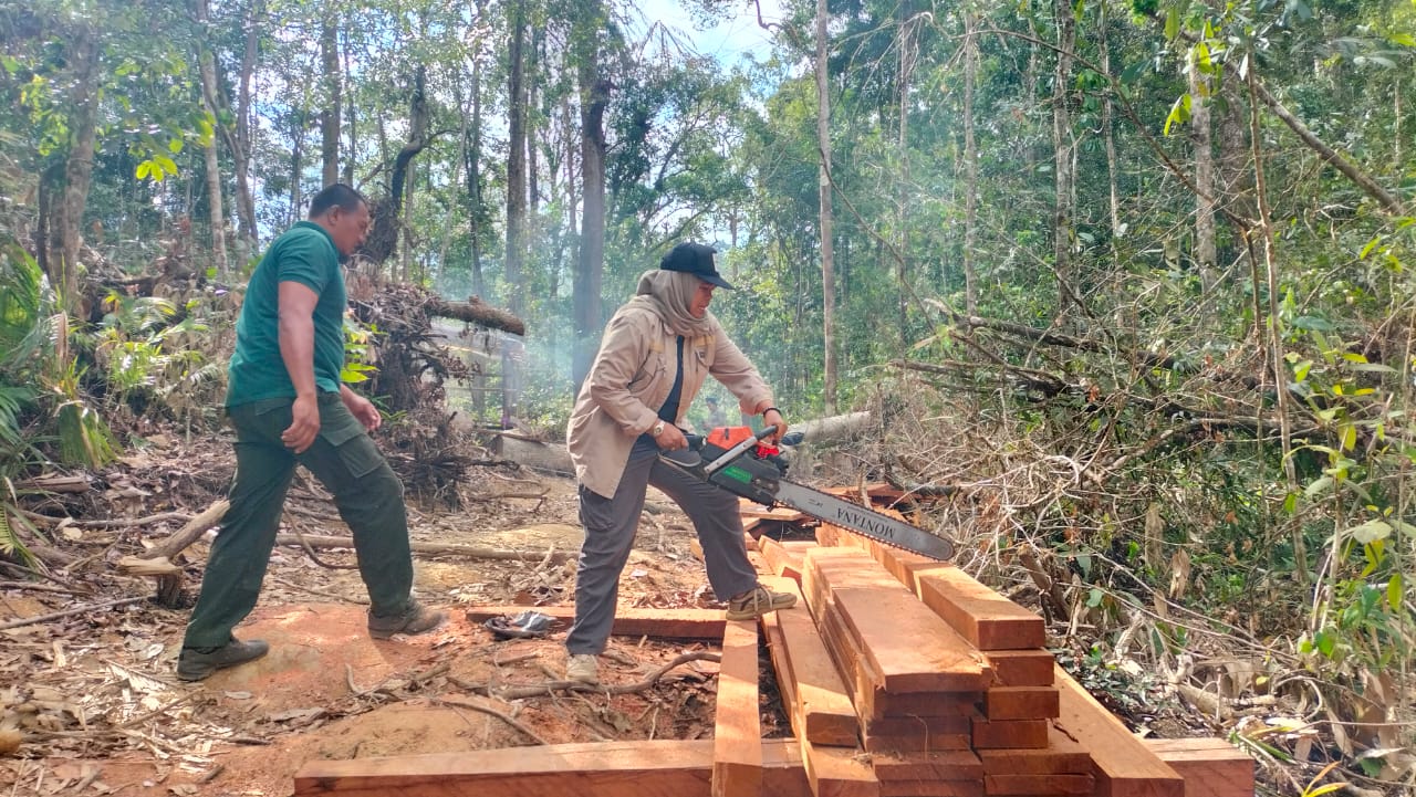 Selanjutnya, ‎mengamankan peralatan kerja, di antaranya; ‎4 unit chainsaw, 1 unit alat penggulung kabel sling, 2 buah baterai, 17 botol oli, 1 buah rantai, 1 buah dongkrak dan 1 set kunci, 2 karung beras, 1 gulung terpal, dan 1 gulung tali.