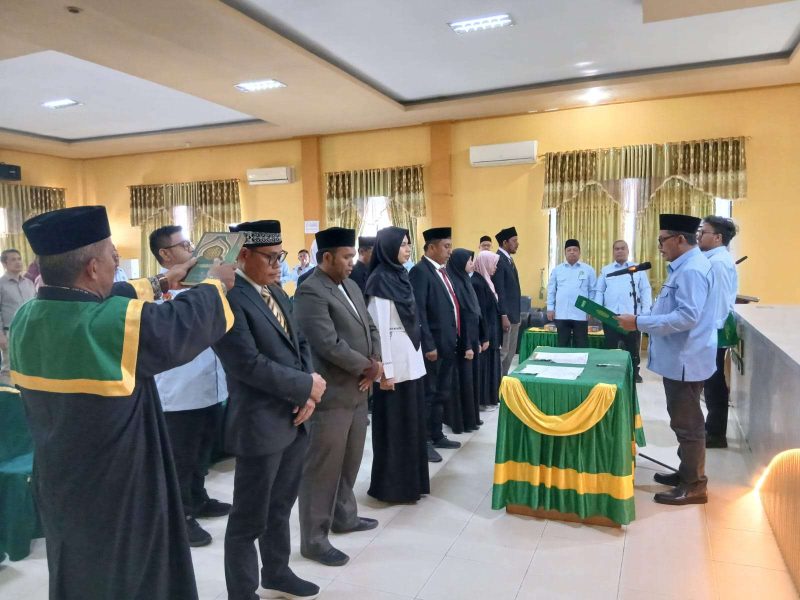Langsa | Atjeh Terkini.id — Institut Agama Islam Negeri (IAIN) Langsa menggelar kegiatan pelantikan dan pengambilan sumpah jabatan bagi pelaksana akademik, administrasi, dan tenaga fungsional. Kegiatan ini menjadi momentum penting dalam penguatan tata kelola kelembagaan, khususnya di lingkungan pascasarjana, kegiatan ini berlangsung di Aula Barat (Rabu, 22/04).