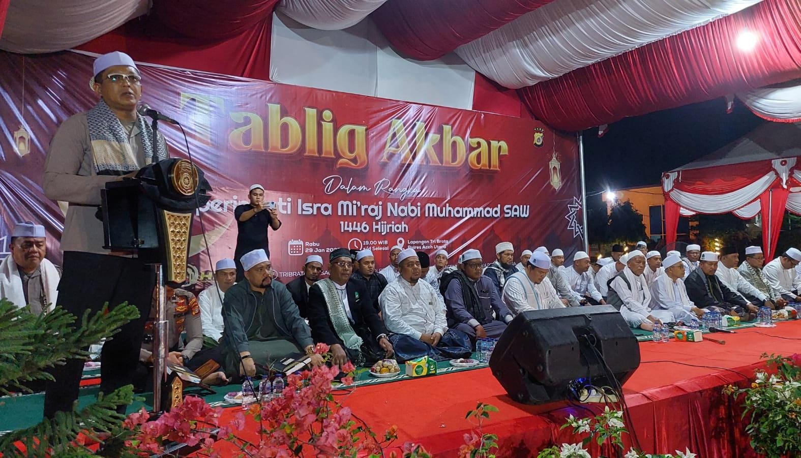 Aceh Utara | Aceh Terkini.id – Lautan manusia memadati halaman Mapolres Aceh Utara dalam rangka menghadiri Tabligh Akbar memperingati Isra Mikraj Nabi Muhammad SAW 1446 H, yang digelar Polres Aceh Utara pada Rabu (29/01/2025) malam.