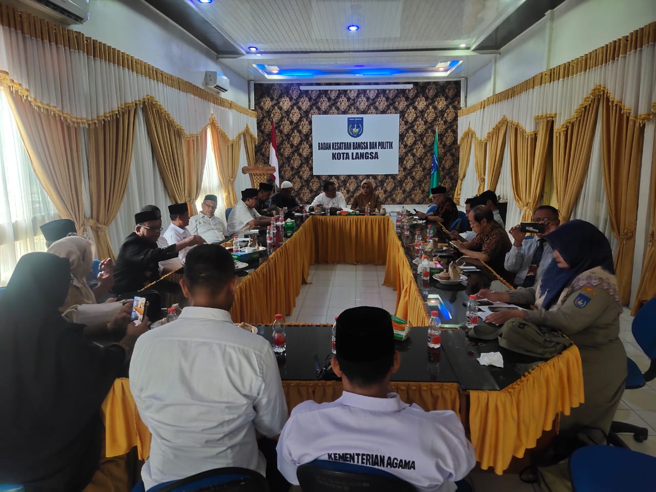 Hadir Kabag TU Kemenag Kota Langsa, Jafar, S.Sos.I, Langsa, Polres, Staf Kajari, Kabid Ketahanan Ekonomi Sosbud dan Ormas Kesbangpol, Sri Verawati SH, Amir Muda Araffat, jajaran staf kesbangpol dan undangan lainnya. (***).