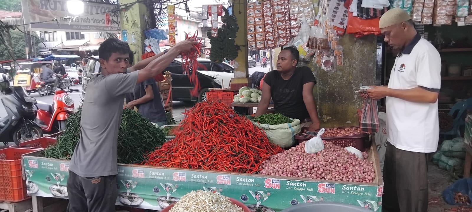 “Melonjak harga Cabai dan sejenisnya menjelang hari besar karena kontributor kesulitan mendapat hasil pertanian terutama bahan dari Aceh Tengah/Takengon yang selama ini memenuhi pasar se-Aceh petani lebih fokus persiapan sambut hari raya Idul Fitri.” terang Kurniawan.
