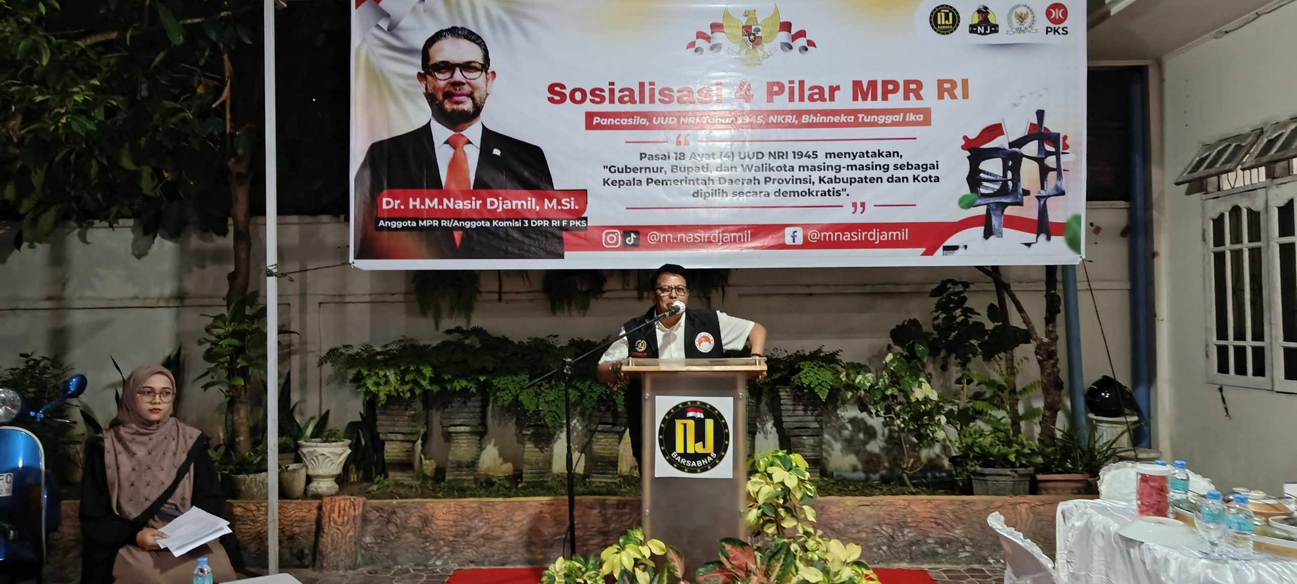 Selanjutnya, Nasir Djamil memaparkan 4 Pillar MPR RI, dimana kedaulatan negara ada ditangan rakyat. Namun kata dia, saat ini pemilihan langsung Kepala Daerah menjadi perdebatan di DPR RI.