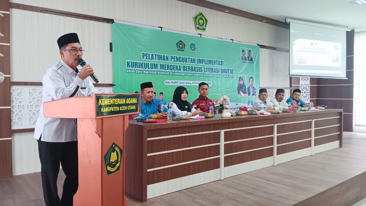 Kegiatan yang diikuti puluhan guru Madrasah Ibtidaiyah di lingkungan Kemenag Aceh Utara, dibuka secara resmi oleh Kepala Kantor Kemenag Aceh Utara, H. Fadli, S.Ag., M.Si diwakili Kasi Pendidikan Madrasah, Drs. H. Munzir, M.Pd, Selasa (02/09/2025).
